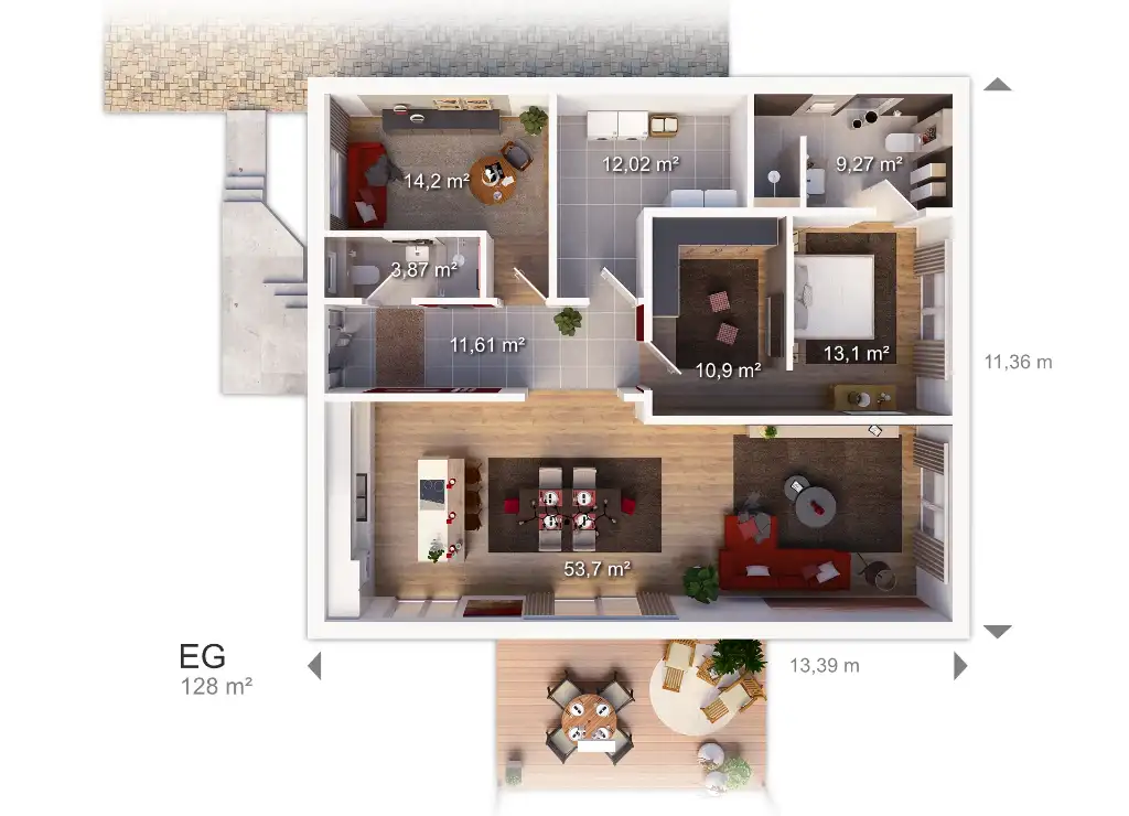 Sende mir gerne deine Grundriss-Ideen, und wir erstellen deine individuelle 360° Tour, so wie du sie oben siehst. Infos & Preise dazu findest du HIER.