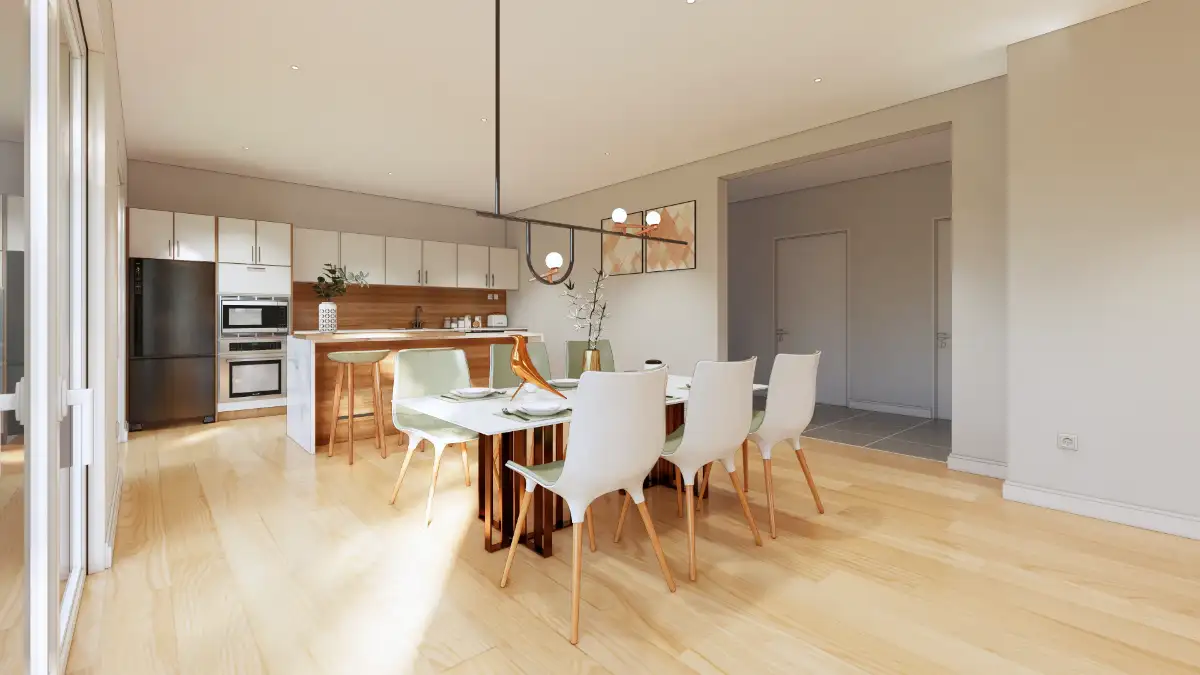 Der gewählte Laminatboden zeichnet sich nicht nur durch Strapazierfähigkeit aus, sondern verleiht jedem Raum eine natürliche Optik und angenehme Haptik für eine warme und gemütliche Atmosphäre.